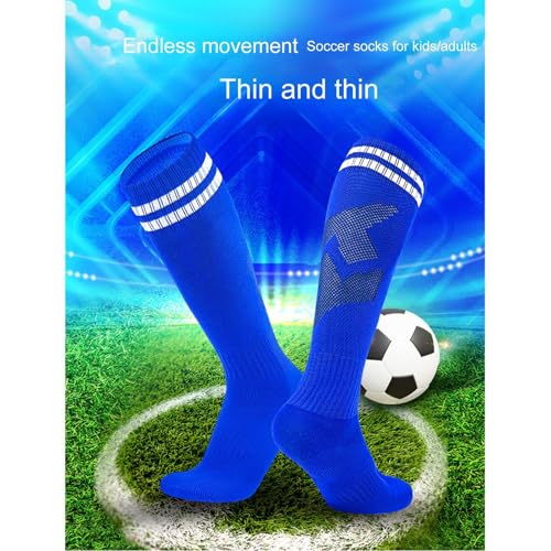 • Superior Protection: kids soccer socks are designed with shock-absorbing technology to protect young athletes' feet during intense games. The reinforced cushioning on the ankle and arch reduces impact and enhances comfort on the field. Ideal when paired with shin guards. Elastic ribbed cuffs is anti-slip, prevent socks from falling down, let you fully focused on your game.