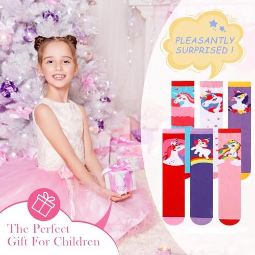 • 6 PAIRS CUTE SOCKS: Each pack contains 6 pairs of children knee socks in 6 different styles, enough for your child's daily wear and replace. These socks are perfect for wearing with girl's everyday dress and shoes. Your little princess will love the unicorn design and style of these long socks.