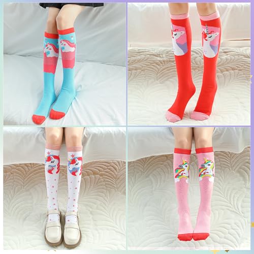 • CUTE UNICORN DESIGN: These cute unicorn pattern knee-high socks come in a great assortment of designs and vibrant colors. Girls knee socks can be easily matched with girls' outfits of different colors, they are ideal to be worn with miniskirts and dresses. It will be suitable for all seasons. These cute girl stockings help add the sweetness to your girl's outfits and keep your girl warm under the trendy look.