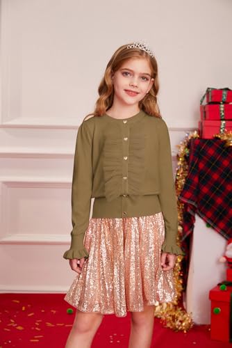 GRACE KARIN Girls' Cardigan Button Up Knit Mesh Ruffle Uniform Sweater Size 5-12 1
