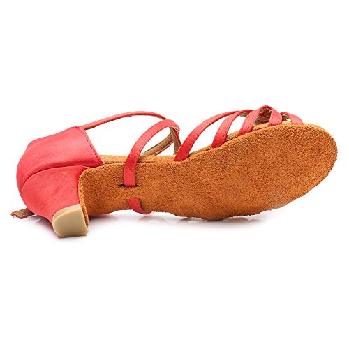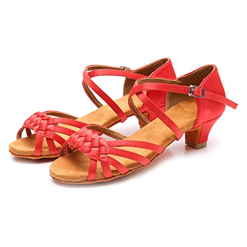 YKXLM Girls Latin Dance Shoes Kids Low Heels Tango Salsa Ballroom Practice Dance Shoes, 1208,Red,12.5 M Little Kid 5