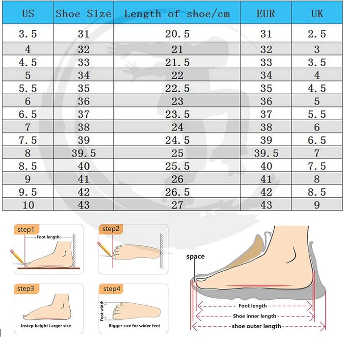 • Size Selection: Sizing selection It is recommended to choose the appropriate size after measuring the length of the foot. If it is a boy or the foot is fat, please choose a larger size on the basis of the standard size.