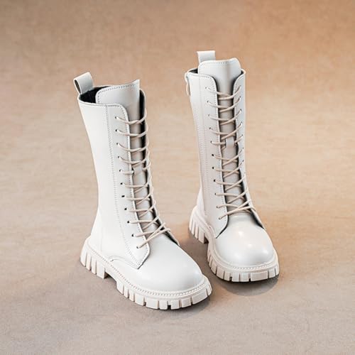More information about Girls Lace Up Riding Boots Mid Calf Combat Boots PU Leather Side Zipper Punk Goth Boot 4-11 Years