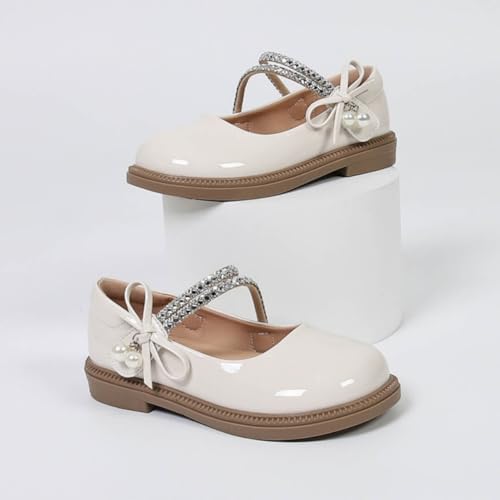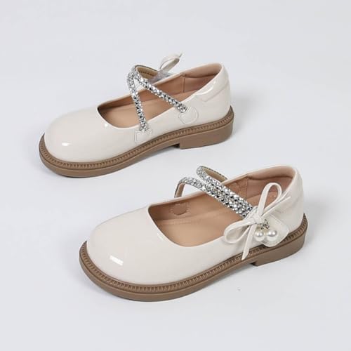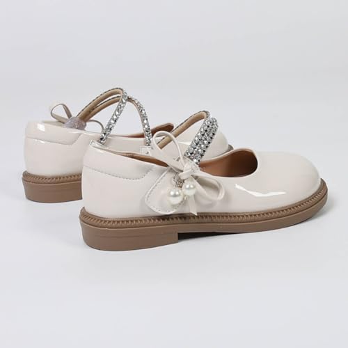 • CLASSIC DESIGN: Patent leather Mary Jane flats featuring an elegant crystal strap and decorative bow detail, perfect for formal occasions and school wear
