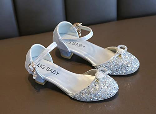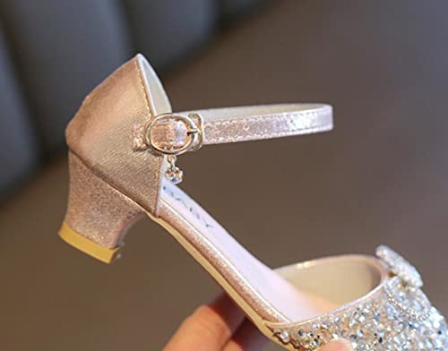 Girls Mary Jane Dress Shoes Low Heel Princess Party Glittler Bow Sandals 5
