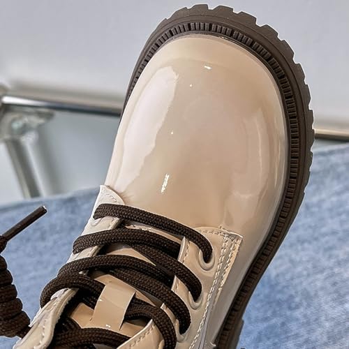 Girls Ankle Boots Lace Up Riding Boots PU Leather Side Zipper Lug Sole Ankle Booties Walking Shoes 4-11 Years 7