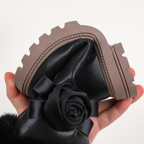Girls Snow Boots Fashion Warm Fur Lining Non-Slip Ankle Boots Outdoor Winter Cozy Platform Chunky Heel Mid Calf Booties 6
