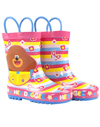 Girls Pink Rain Boots with Handles | Striped Waterproof Footwear for Outdoor Play | Easy Pull-On Design | Kids Cartoon Boots | Duggee Merchandise for Children 6