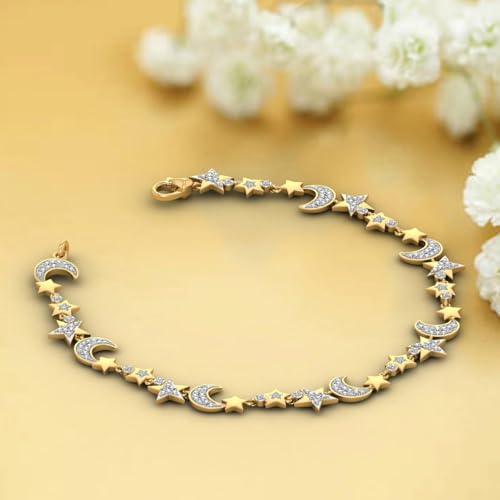 HOT ! 0.15 Carat Diamond Stars and Moon Bracelet in 925 Sterling Silver or in 18K Yellow Gold over Sterling Silver