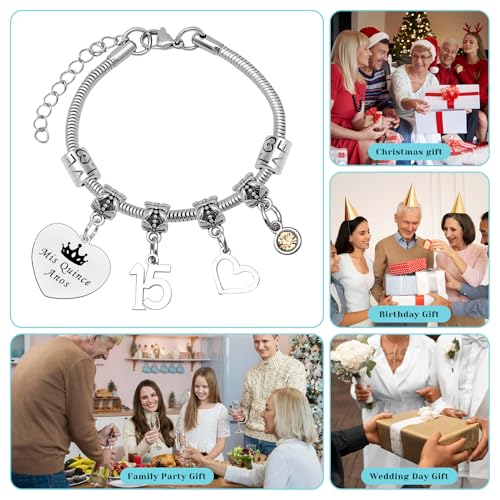 • Birthday Gift for Quinceanera 15 Material: Made with high quality stainless steel, durable, light weight and comfortable, tarnish resistant, and will not change color. Suitable for treasure. This jewelry is fully adjustable and will fit most wrist sizes. The jewelry is well packaged with a specially designed velvet pouch with high quality, is ready to be given as a gift. Hoping this jewelry can become an eternal memorial in her life, let her feel your love and care for her.