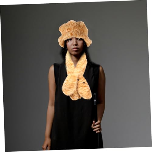 SAFIGLE 1Set Cute Bear Ear Bucket Hat and Scarf Women Fuzzy Plush Animal Winter Accessory Dual Purpose Beanie and Hooded Scarf Faceslimming Design for Charming Look Warm 1