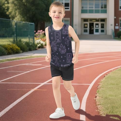 Witchy Mushrooms Purple Boys Athletic Tank Top Sleeveless Kids Vest Toddler Undershirts for Fitness Travel Swim 3T 5