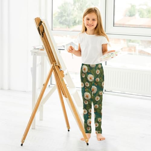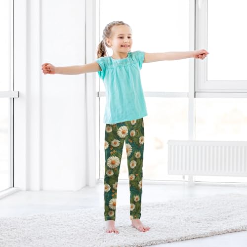 Girls Leggings Daisy Palm Leaves Soft Toddler Leggings for Girls Kids Pants Size 4T-10T 5