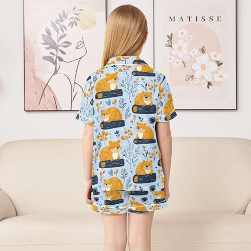 Beaver Forest Pajamas Set Summer Button Down Sleepwear Pjs Sets Comfy Loungewear 5