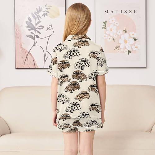 Leopard Car Print Summer Pajamas Set Soft Satin Pjs Sets 2 Piece Short Sleeve Sleepwear Casual Clothes 3