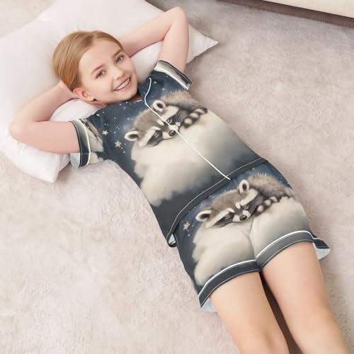 More information about ALAZA Raccoon Starry Sky Cloud Satin Pajamas Set Short Sleeve Button Down Sleepwear Summer Pjs 2 Piece