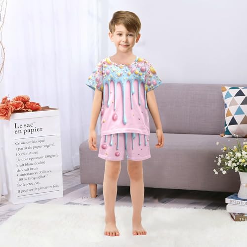 Pajama Sets Short Sleeve Candy Dripping Bubble Background Soft Cotton Summer Sleepwear 2 Piece PJS Size 5-14T 1