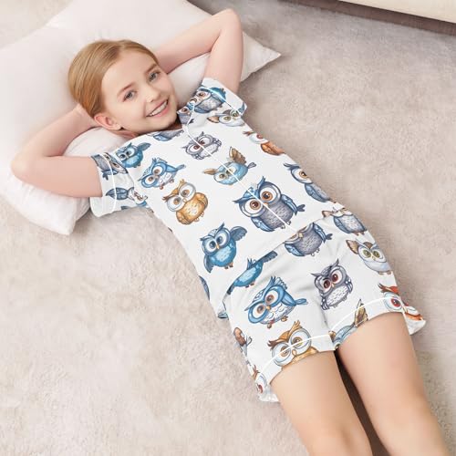 ALAZA Cute Owl Owlet White Satin Pajamas Set Short Sleeve Button Down Sleepwear Summer Pjs 2 Piece 7