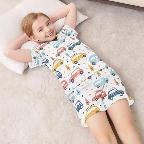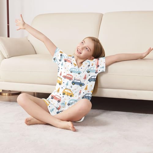 ALAZA Cartoon Car Polka Dot Tree Pajamas Satin Pajama Set Short Sleeve Button Down Sleepwear 7