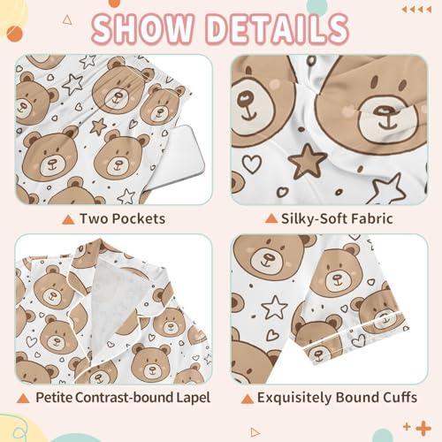 ALAZA Cute Bear Star Heart Pajamas Satin Pajama Set Short Sleeve Button Down Sleepwear 6