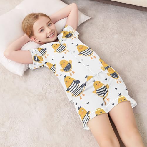 More information about ALAZA Chicken in Striped Love Heart Pajamas Satin Pajama Set Short Sleeve Button Down Sleepwear