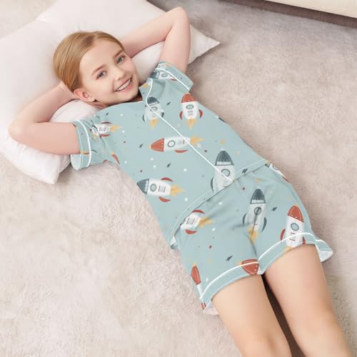 senya Cute Rocket Satin Summer Pajama Sets Silk Short Sleeve Button Down Sleepwear 5