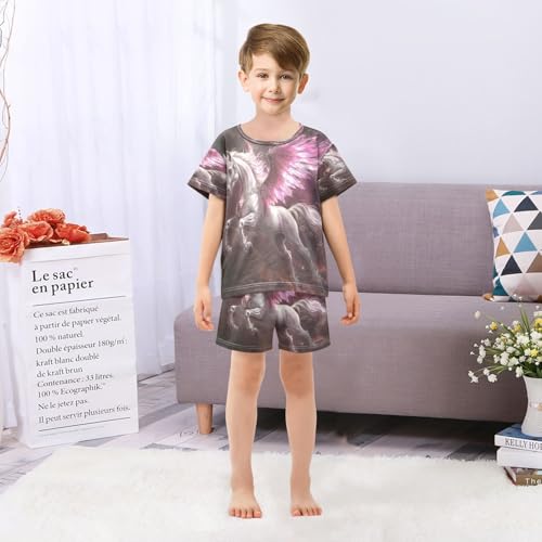 ALAZA Unicorn Wing Horse Animal Pajamas Set Short Sleeve Cotton Sleepwear Summer Pjs 2 Piece 5-14Y 6