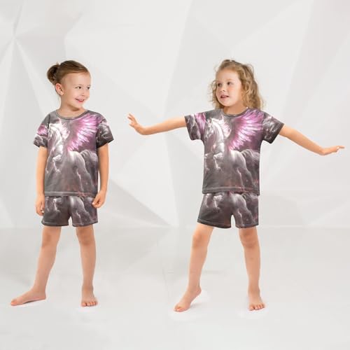 ALAZA Unicorn Wing Horse Animal Pajamas Set Short Sleeve Cotton Sleepwear Summer Pjs 2 Piece 5-14Y 5