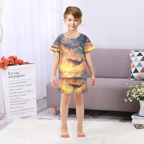ALAZA Whale Cloud Fish Animal Pajamas Set Short Sleeve Cotton Sleepwear Summer Pjs 2 Piece 5-14Y 5