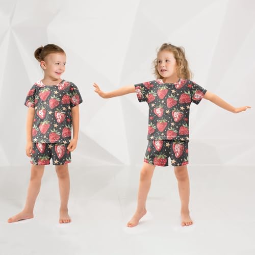 ALAZA Vintage Strawberry and Stars Pajama Set Short Sleeve Sleepwear Soft Lounge Nightwear 1