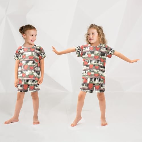 ALAZA Strawberries and Piano Keys Music Pajama Set Short Sleeve Sleepwear Soft Lounge Nightwear 3