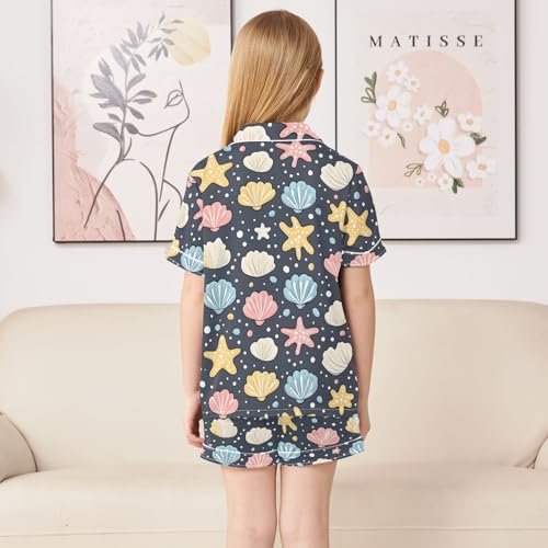 Cute Seashell Starfish Colorful Pajamas Set Summer Button Down Sleepwear Pjs Sets Comfy Loungewear 2