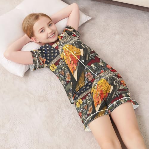 ALAZA Parrot American Flag Flower Satin Pajamas Set Short Sleeve Button Down Sleepwear Summer Pjs 2 Piece 6