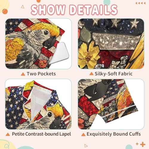 More information about ALAZA Parrot American Flag Flower Satin Pajamas Set Short Sleeve Button Down Sleepwear Summer Pjs 2 Piece