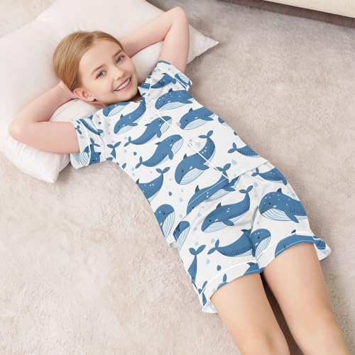 ALAZA Cartoon Whale Water Fish Satin Pajamas Set Short Sleeve Button Down Sleepwear Summer Pjs 2 Piece 1