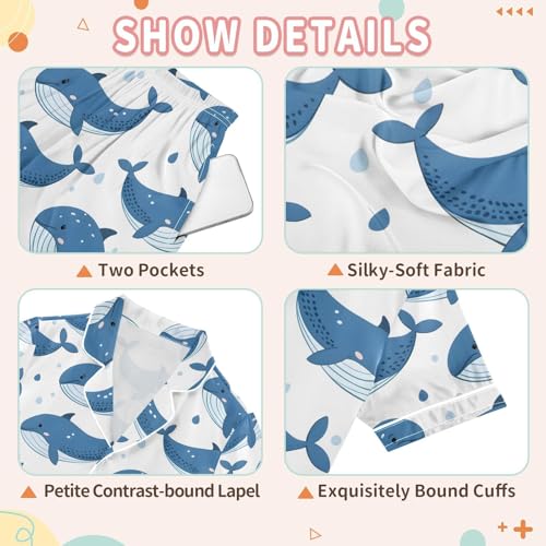ALAZA Cartoon Whale Water Fish Satin Pajamas Set Short Sleeve Button Down Sleepwear Summer Pjs 2 Piece 5