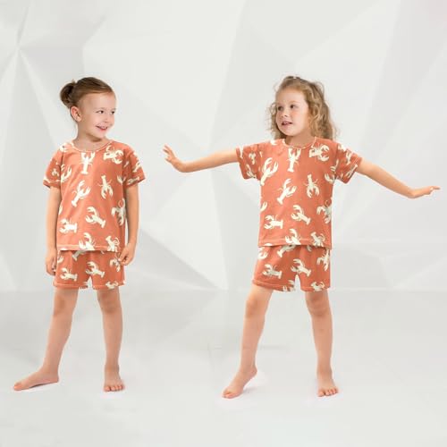 Pajama Sets Short Sleeve Cute Lobster Print on Orange Soft Cotton Summer Sleepwear 2 Piece PJS Size 5-14T 6