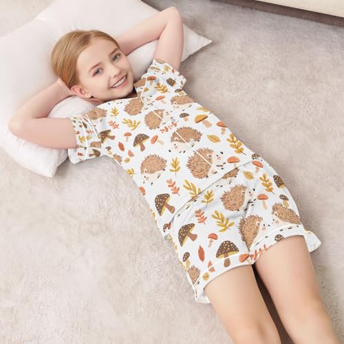 senya Mushroom Hedgehogs Satin Summer Pajama Sets Silk Short Sleeve Button Down Sleepwear 1