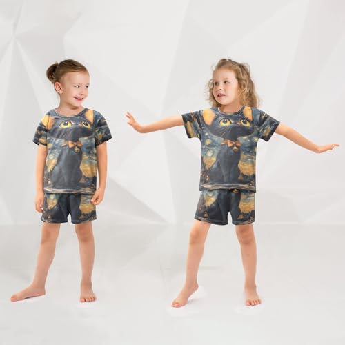 ALAZA Cat Sky Galaxy Nebula Van Gogh Pajamas Set Short Sleeve Cotton Sleepwear Summer Pjs 2 Piece 5-14Y 2