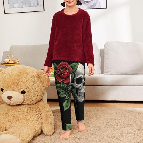 HOT ! Pajama Pants Pajama Bottoms with Elastic Waistband Sleepwear Lounge Pants, Vintage Skull Rose Flowers 1