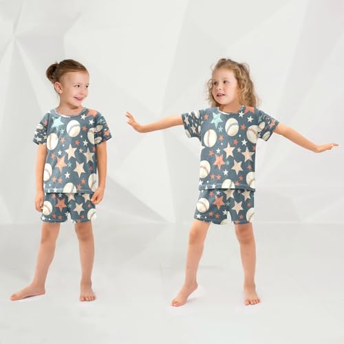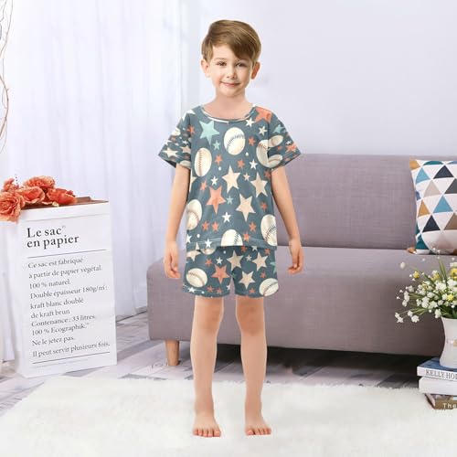 senya Short Sleeve Pajamas Sets Summer Cotton Sleepwear Multicolor Stars Baseball 5