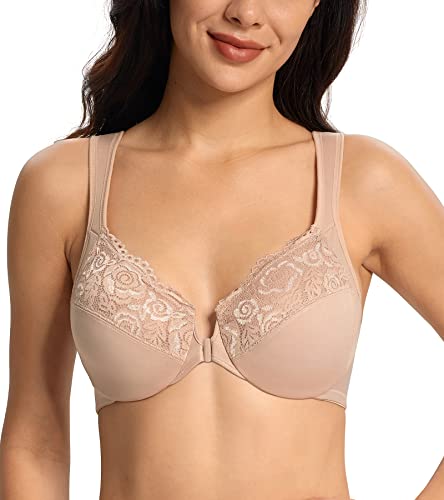 HOT ! Lemorosy Women’s Full Figure Plus Size Unpadded Front Closure Wide Shoulder Straps Underwire Everyday Bra