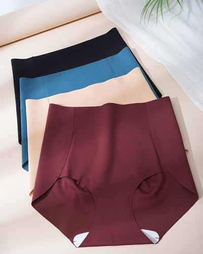 LEVAO Women Tummy Control Underwear, High Waisted Seamless Panties No Show Postpartum Briefs 4 Pack S-3XL 4