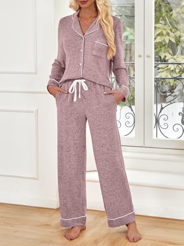 • Fashion Design: Womens casual long sleeve v neck button down pajamas sets, pants with drawstring elastic design
