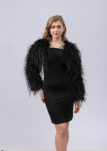LVCOMEFF Women Ostrich Feather Cropped Jacket Bolero Top with Long Sleeve for Party Furry Luxurious 6