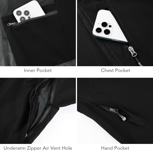 • ⭐Practical Design:This rain jacket showcase a classic style, long sleeve, adjustable hood,loose hem keep you feel cozy when body in movement,underarm zipper air vent holes provide excellent breathable and moisture-wicking function,adjustable drawstring on the waist offers a slim fit,hook & loop fastener on the cuffs prevent water and wind penetrating
