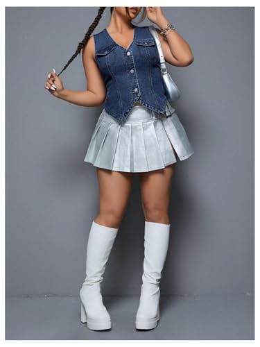 Floerns Women's Plus Size Sleeveless Button Down Jean Vest V Neck Denim Jacket 6