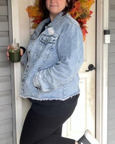 More information about Kedera Womens Denim Jacket Distressed Frayed Ripped Jean Jacket Casual Button Down Light Jackets with Pockets