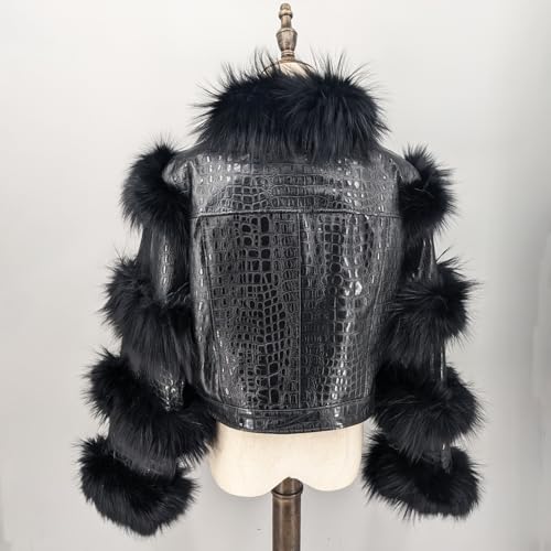 More information about LVCOMEFF Women Sheep Leather Cropped Jacket Bolero Top Coat Motorcycle Jacket With Fox Fur Layer Long Sleeve Python Pattern