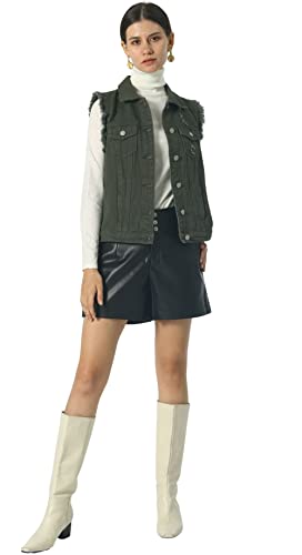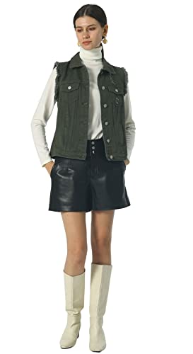 loveimgs Women's Fashion Sleeveless Regular Fit Lightweight Button Front Candy Color Ripped Denim Vest Jacket Pockets 4